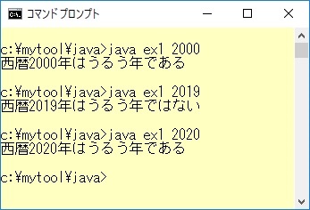 System.out.println( "西暦" + 年のデータ.intValue() + "年は" + 結果表示[うるう年の判定(